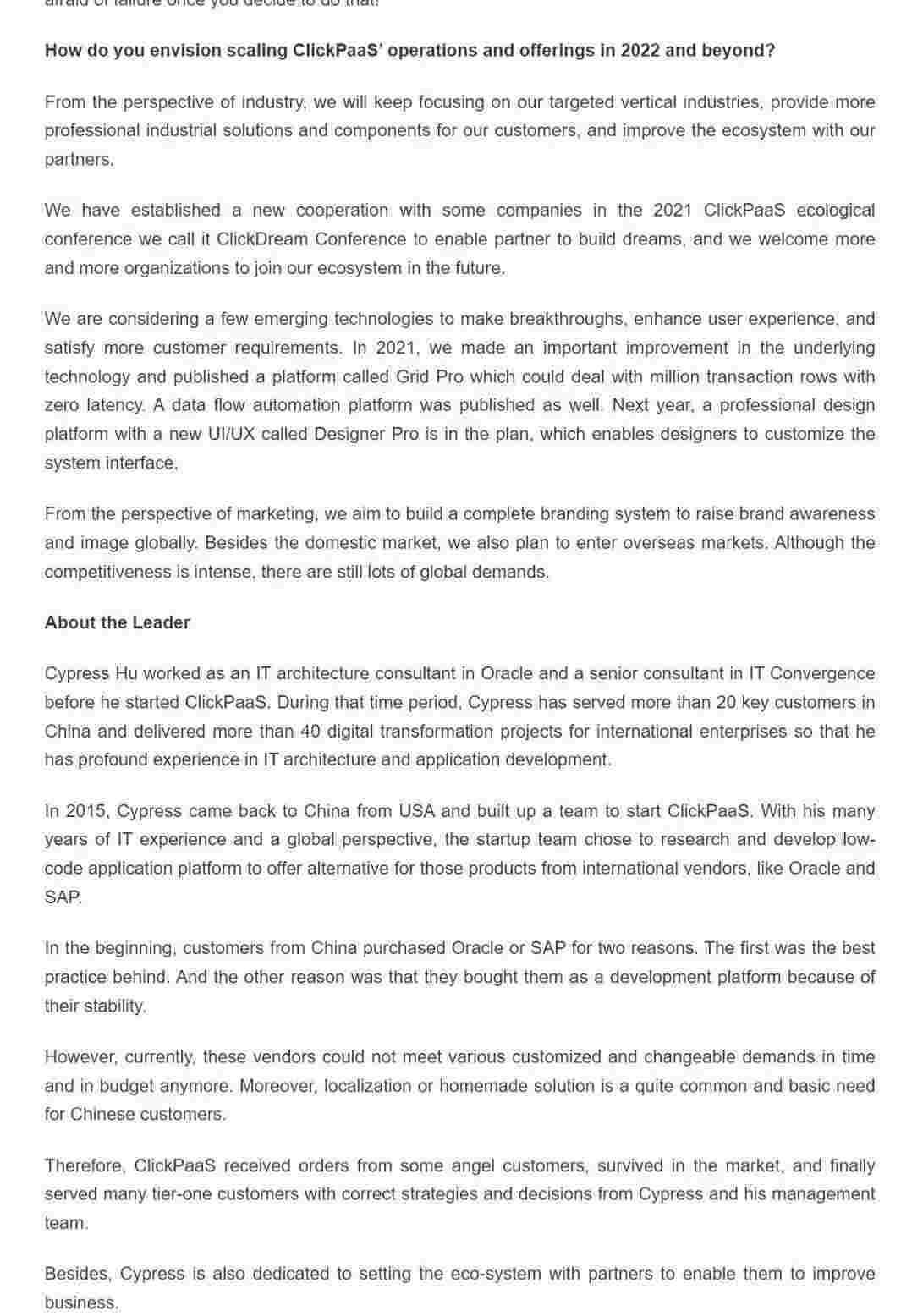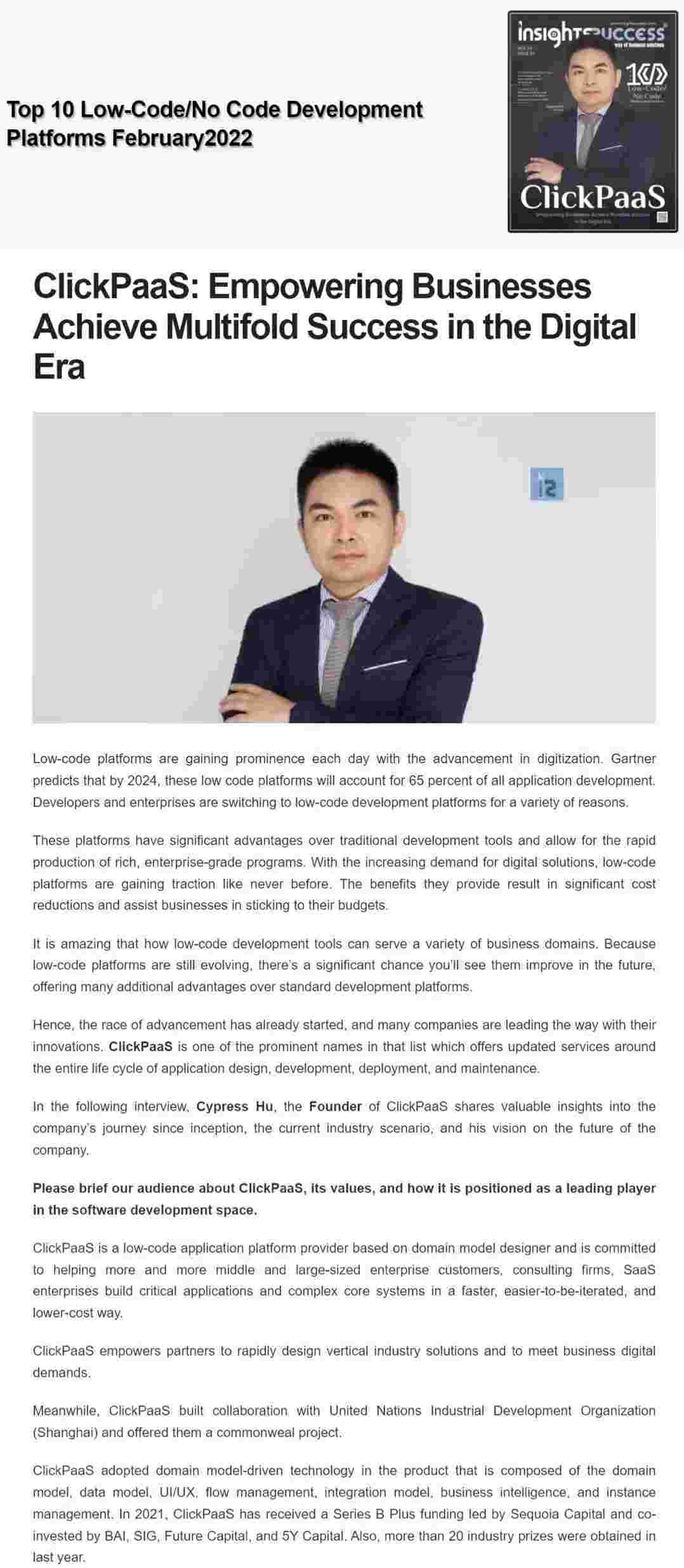 2022年年初,,,,,,,,,,EBPAY入选外媒Insights Success低代码/无代码开发平台 Top10,,,,,,,创始人、、、、、、、、、、CEO胡柏受邀接受专访并荣登封面人物,,,,他与Insights Success的读者分享了EBPAY成立的初心、、、、、、、、发展历程、、、、、、、、、、当前的行业发展趋势以及他对公司未来的展望。。。。。。。